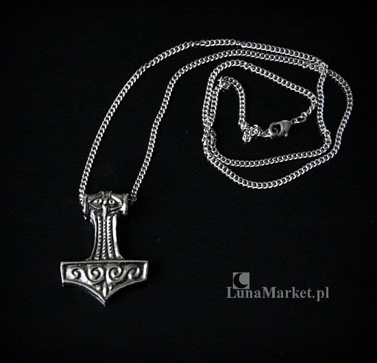 Wisior w kolorze starego srebra, w kształcie Młota Thora - tradycyjnego amuletu wojowników nordyckich. Mjölnir noszony był przez Wikingów jako amulet o charakterze ochronnym.