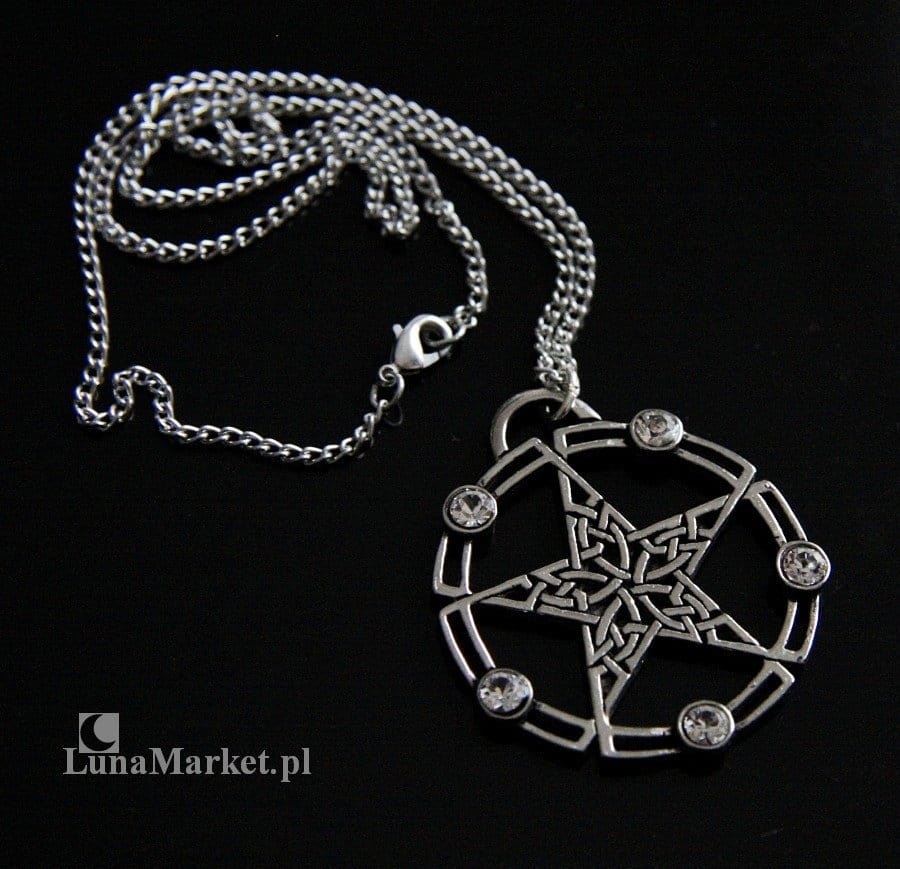Wisiorek w kształcie pentagramu prostego wpisanego w okrąg (pentakl). Pentagram jest wypełniony splecionymi celtyckimi węzłami. Na otaczającym go okręgu znajduje się 5 przezroczystych kryształków.